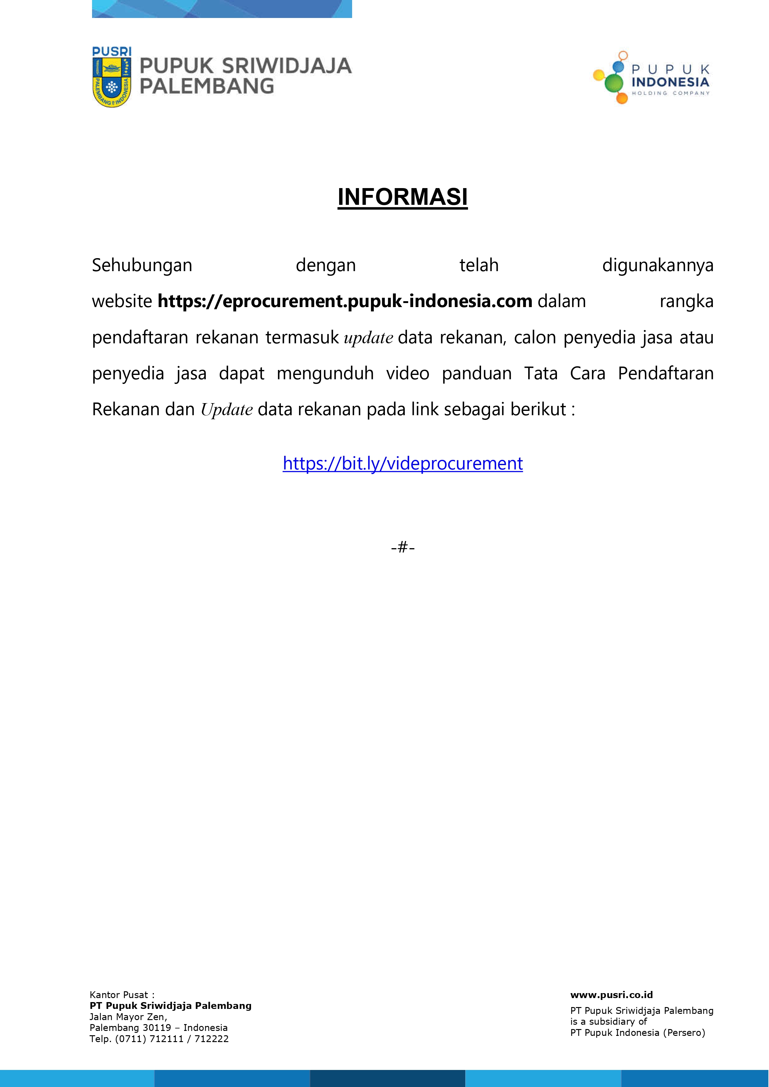 Tata Cara Pendaftaran dan Update data rekanan, terlampir panduan pada link sebagai berikut :